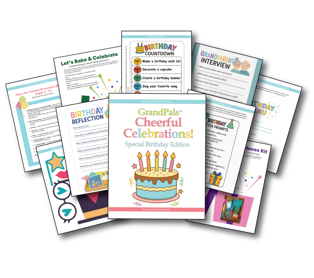 This fun-filled bonus includes fun printables, postcards, letter ideas, care package ideas, and conversation prompts for all ages. Whether your grandchild is turning 3 or 13, you’ll have everything you need to make them feel loved, celebrated, and special.